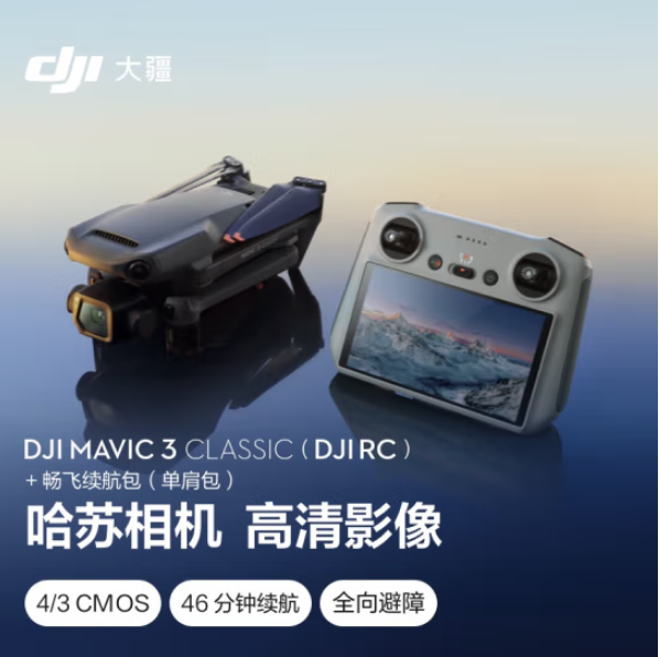 大疆 DJI Mavic 3 Classic(带屏遥控器)无人机 官网标配 赠(畅飞续航包(单肩包))SKU:yzwhyp964176