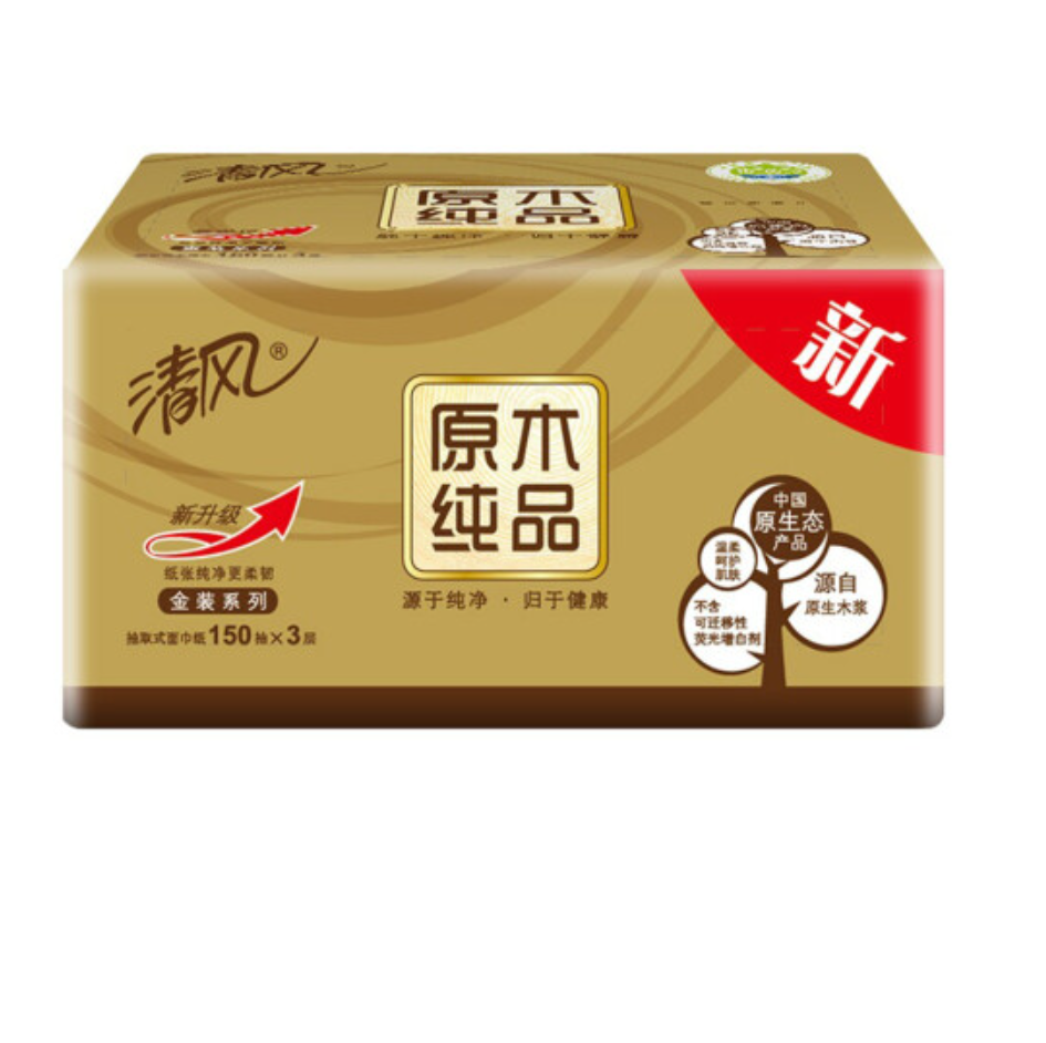 清风抽纸 纸巾 面巾纸 M码 金装3层150抽*20包整箱销售SKU:yzwhyp964269