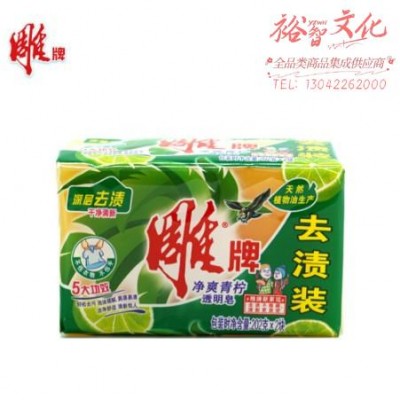 首页 > 装具 > 盥洗、厨房用织物制品 > 雕牌(DIAOPAI)高级透明皂202g*2 24组/件SKU:yzwhyp964333