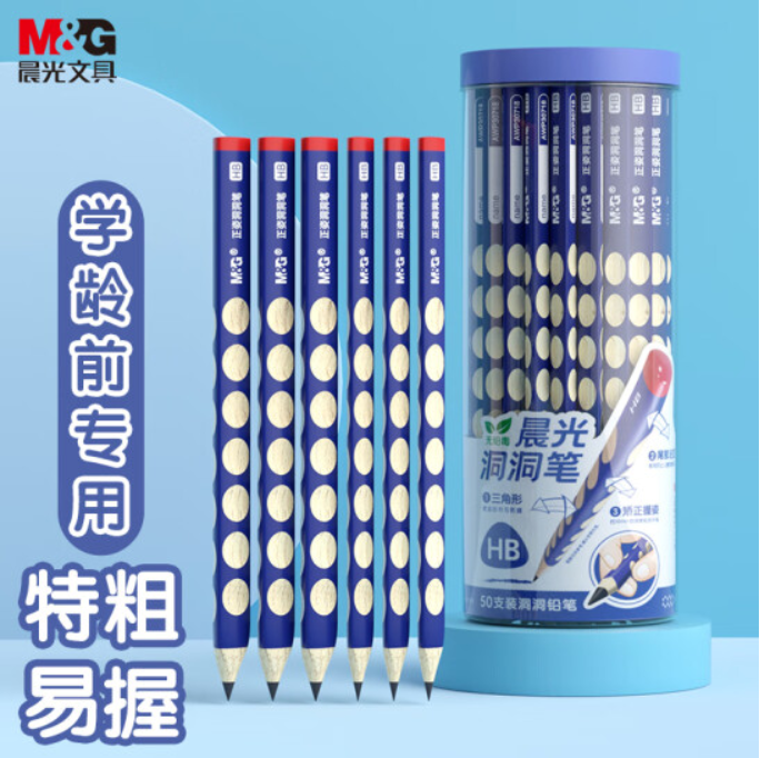 晨光(Mamp;amp;G)文具 洞洞铅笔30支HB 特粗杆易抓握 幼儿学龄前专用 儿童正姿矫姿 三角木杆铅笔AWP30770 SKU:yzwhyp964378