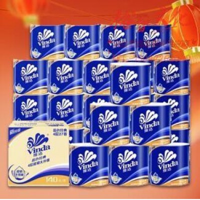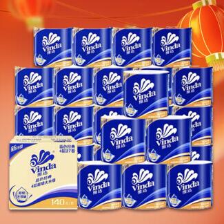 维达(Vinda)卷纸 蓝色经典140克*27卷 4层加厚 卫生纸卷筒纸 纸巾卷纸 整箱SKU:yzwhyp964419