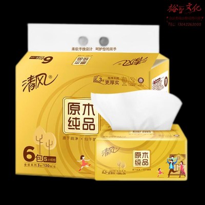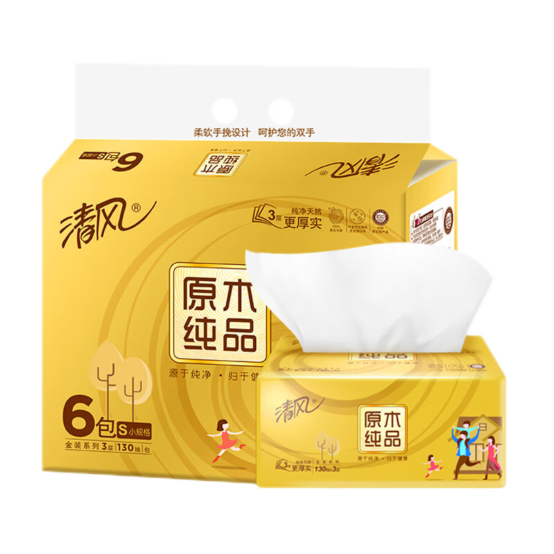 清风抽纸 原木纯品金装系列 3层130抽*6包SKU:yzwhyp964464