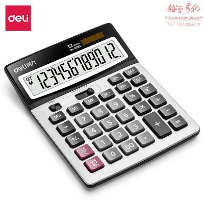 得力(deli)双电源宽屏大号金属面板办公桌面计算器 财务计算机 办公文具用品 银灰色1654SKU:yzwhyp966891