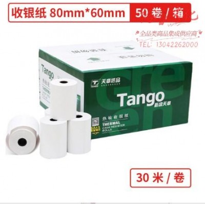 天章 80×60mm 30米/卷 50卷/箱 收银纸热敏打印纸 小票纸 叫号机热敏纸 SKU:SKU:yzwhyp966955