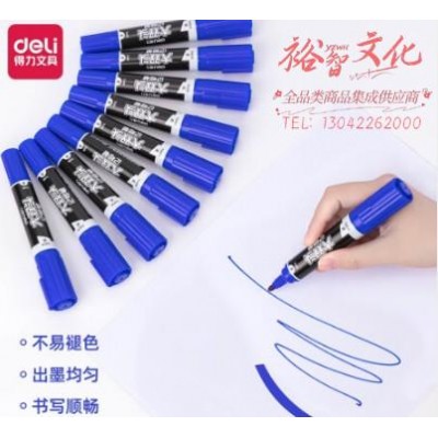 得力 大双头记号笔 S555蓝色 十支SKU:yzwhyp967028