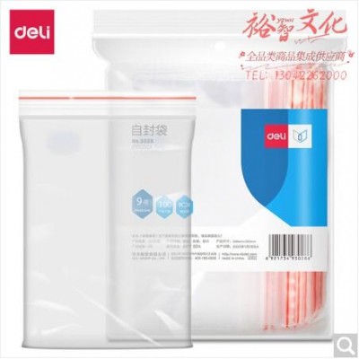 得力3028自封袋(透明)-9号(100个/包)280x200mm0.04mmSKU:yzwhyp967679
