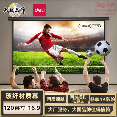 得力(deli)120英寸16:9白玻纤遥控电动投影幕布 适配坚果极米当贝小米投影机 50451SKU:yzwhyp968094