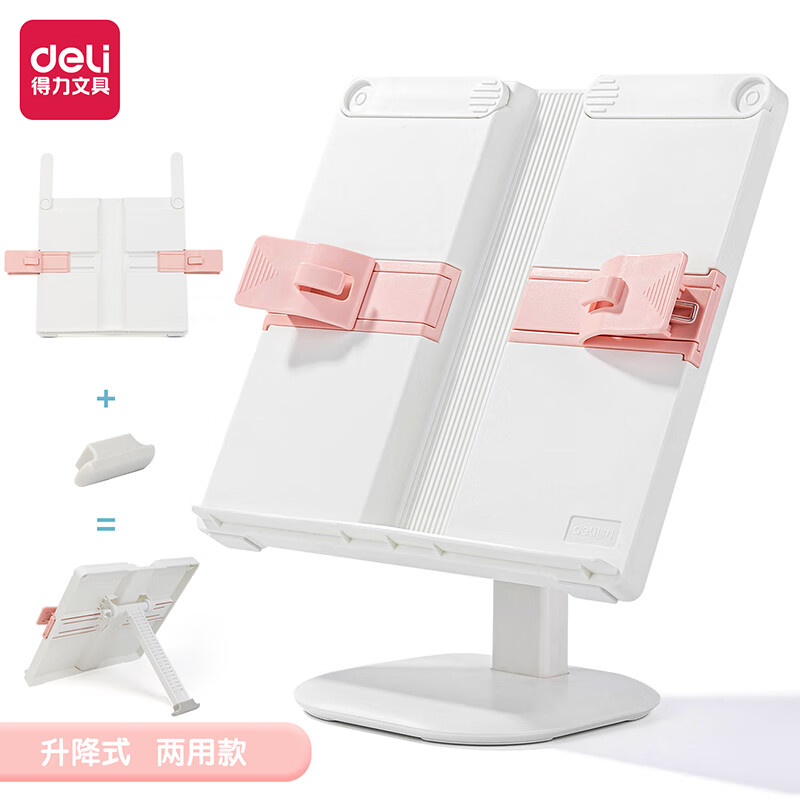 得力74356防低头阅读架 伸缩17档看书神器 学生用书夹书靠书立架升降架(粉)SKU:yzwhyp968187