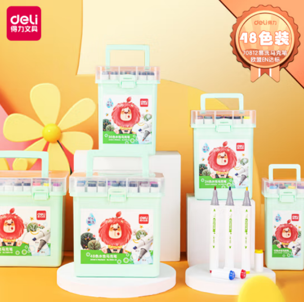 得力70812-48易洗水性三角杆马克笔(混)(48色/桶) SKU:yzwhyp968230