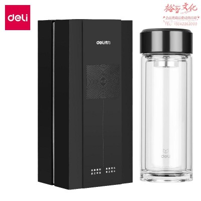 得力17660双层玻璃杯黑色SKU:yzwhyp968246