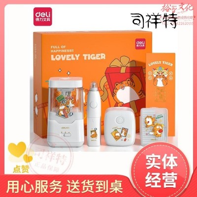 得力68910A 有虎同享电动文具套装(电动削笔机 电动橡皮擦 桌面吸尘器 )(盒)SKU:yzwhyp968250