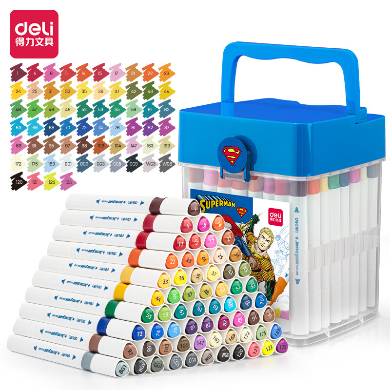 得力(deli)正义联盟水性马克笔64色 双头三角杆 HM103-64SKU:yzwhyp968350