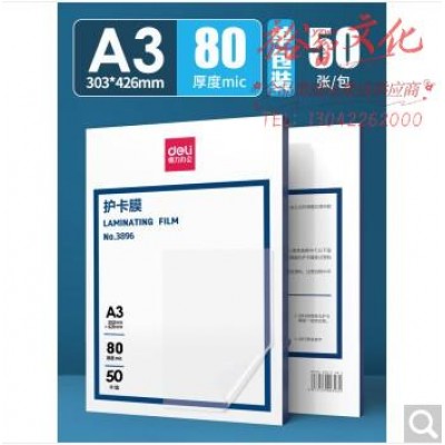 得力3896塑封膜(透明白)(50张/盒)SKU:yzwhyp968416