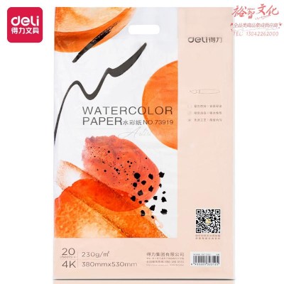 得力73919_4K水彩纸(白色)(包)粗纹230g美术绘画纸 木棉纸浆初学者水彩水粉画专业用纸 4开20张 SKU:yzwhyp968861
