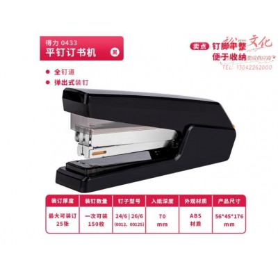 得力(deli)0433 平钉省力型订书机 单指按压平钉包角 黑色SKU:yzwhyp968927