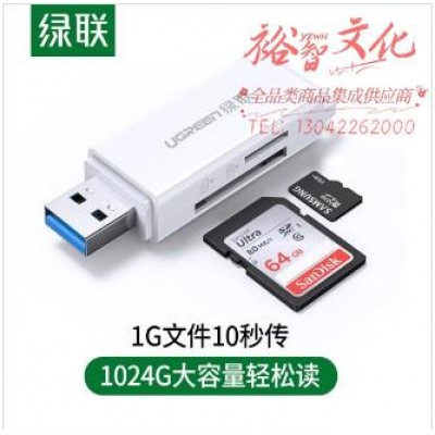 绿联(UGREEN)CM104(40751) USB3.0高速 双卡槽设计多功能SD/TF二合一读卡器SKU:yzwhyp968957