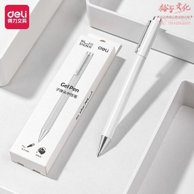 得力NS650 中性笔0.5mm子弹头(笔壳岸沙白/黑)(1支/盒)SKU:yzwhyp969098