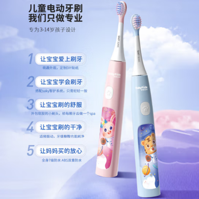 舒客儿童电动牙刷 声波震动专业防蛀软毛护龈 可充电双重模式智能定时B32s 女宝(适用3-14岁)SKU:yzwhyp969151