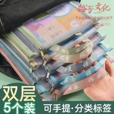 国为(COUVEZI)【带手提】双层a4科目分类文件袋学科分类袋学生试卷收纳袋分类文具作业学科收纳袋 【双层网纱】语数英综作5个装 SKU:yzwhyp969200