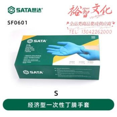 世达一次性丁腈橡胶劳保手套防尘防水耐磨工作手部防护 SF0601(经济型S码)100只/盒 SKU:yzwhyp969285