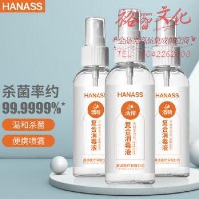 首页 > 办公用品 > 消毒杀菌用品(不包含药品、危险化学品) > HANASS 酒精 季铵盐消毒喷雾剂100ml*3瓶 杀菌皮肤物品清洁餐具消毒液便携装儿童开学消毒液 SKU:yzwhyp969390