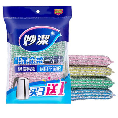 首页 > 用具 > 其他厨房用具 > 妙洁 彩条金柔百洁布清洁布4片 厨房专用 一包