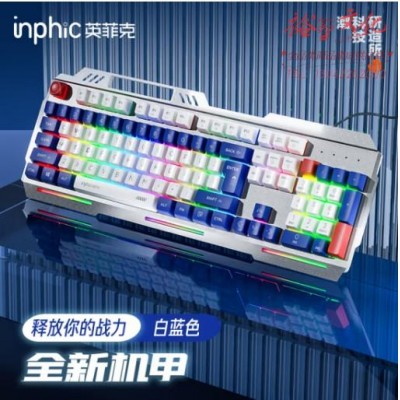 英菲克(INPHIC)K9游戏键盘有线游戏发光金属面板26键无冲机甲键盘 适配于台式电脑笔记本 白蓝机甲 SKU:yzwhyp969567