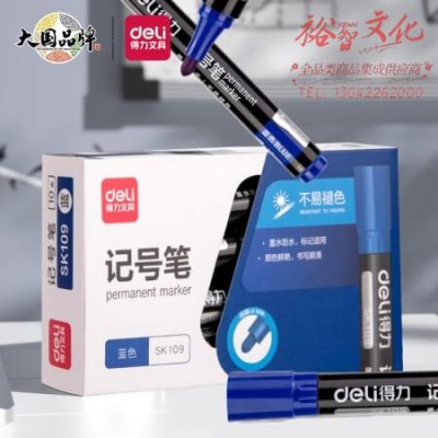 得力(deli)SK109单头细杆1.8mm记号笔 油性笔 蓝色10支/盒装 SKU:yzwhyp969594