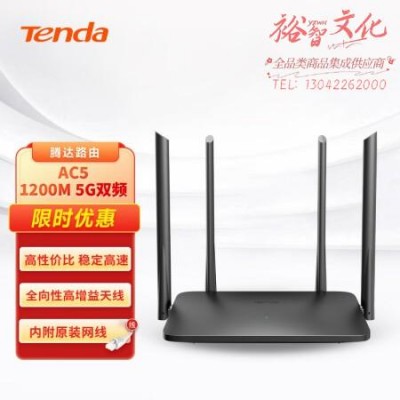 腾达(Tenda)AC5 新版本 1200M 无线路由器 5G双频智能路由 家用WiFi高速穿墙 SKU:yzwhyp969958