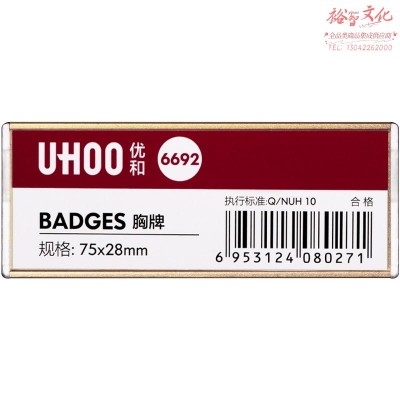 首页 > 建筑建材 > 装饰材料 > 优和(UHOO) 6692 别针胸牌 金色底盖 6个/盒 内芯可替换 工作牌 员工牌 工号牌 SKU:yzwhyp970245