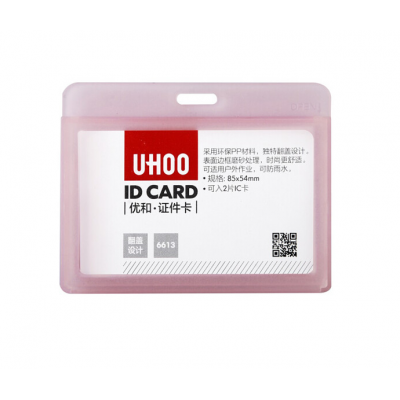 优和(UHOO) 6613 磨砂色证件卡套工作牌工作证学生证公交卡证件套胸牌胸卡单卡不含挂绳 明红横式12个/盒装