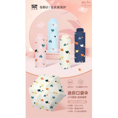 黑胶迷你口袋伞超细五折伞胶囊伞黑胶UPF 50 SKU:yzwhyp970791