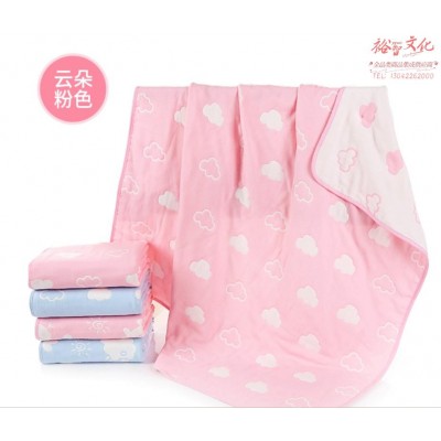 沐凡 纯棉6层纱布浴巾 空调盖毯 云朵粉色110*110cm SKU:yzwhyp970832