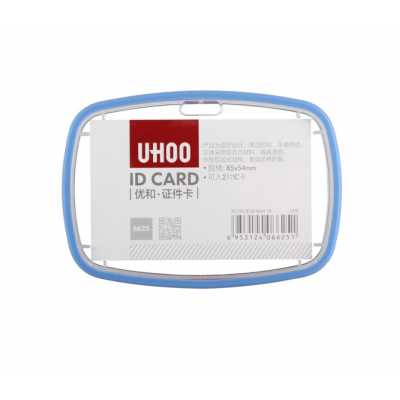 优和(UHOO) 6625 纯雅系列亚克力透明硅胶工作证胸卡学生工牌门禁公交证件卡套 横式蓝色 6个/盒装