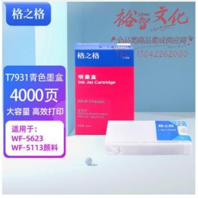 首页 > 办公用品 > 墨水盒 > 格之格 T7932 青色 (其他颜色可备注)适用爱普生Epson wf-5623 wf-5113 SKU:yzwhyp971292