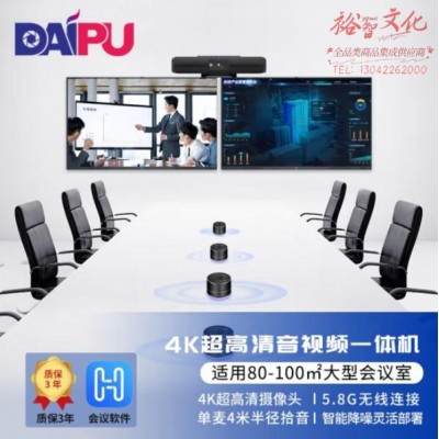 首页 > 通信设备 > 视频会议系统及会议室音频系统 > 戴浦DP-GX18 超清音视频一体机4K超清广角摄像头 5.8G无线分布式全向麦克风 高频扬声器拾音80-100㎡ SKU:yzwhyp971354