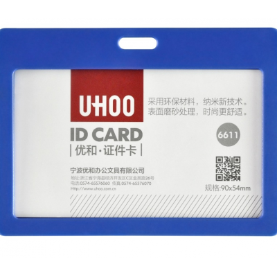 优和(UHOO) 6611 糖果色证件卡套 横式 蓝色 12个/盒 工作证 员工牌 胸卡