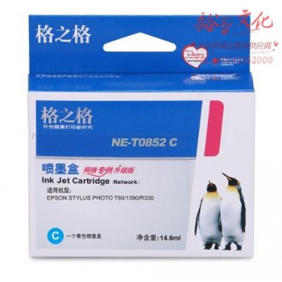 格之格T0852墨盒NE-T0852C蓝色适用爱普生1390 R330 T60 SKU:yzwhyp971374