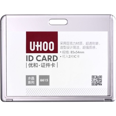 优和(UHOO) 6615 亚克力证件卡套 透明 横式 6个/盒 证件套 工作证 员工牌 胸卡