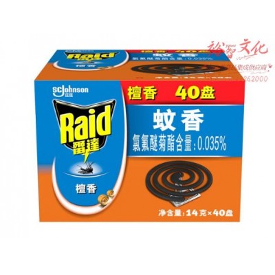 雷达(Raid) 蚊香 40盘*14g盘装 檀香型 灭蚊 防蚊虫 驱蚊器 防蚊虫叮咬 室内卧室可用SKU:yzwhyp971596