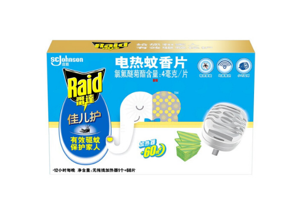 雷达(Raid)佳儿护 电蚊香片 60片 无线加热器 桉树香型 插电驱蚊器 灭蚊 防蚊虫 驱蚊片SKU:yzwhyp971601