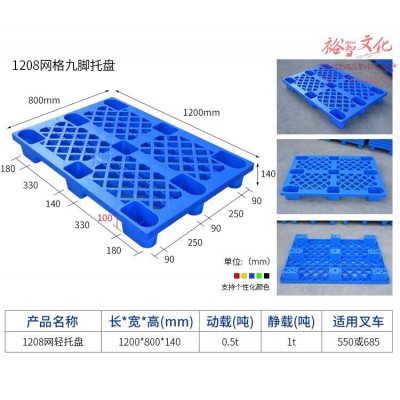 叉车托盘 网格九脚塑托盘料仓库托盘栈板 1200*800*140SKU:yzwhyp971655