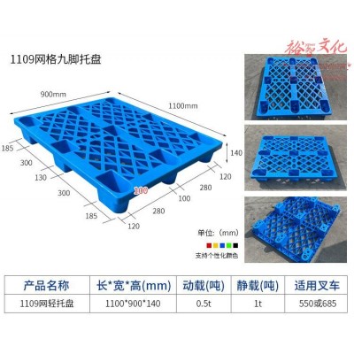 首页 > 建筑建材 > 装饰材料 > 叉车托盘1109 网格九脚塑托盘料仓库托盘栈板 1100*900*140 更多尺寸咨询客服SKU:yzwhyp971657