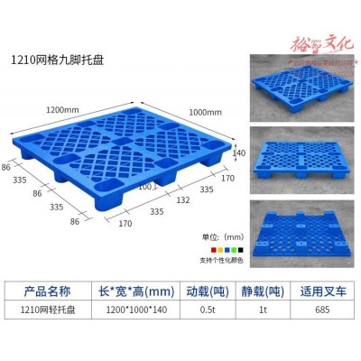 首页 > 建筑建材 > 装饰材料 > 叉车托盘1210 网格九脚塑托盘料仓库托盘栈板 1200*1000*140 更多尺寸咨询客服SKU:yzwhyp971659
