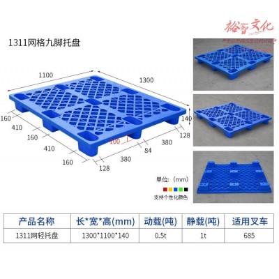 首页 > 建筑建材 > 装饰材料 > 叉车托盘1311网格九脚塑托盘料仓库托盘栈板 1300*1100*140 更多尺寸咨询客服SKU:yzwhyp971662