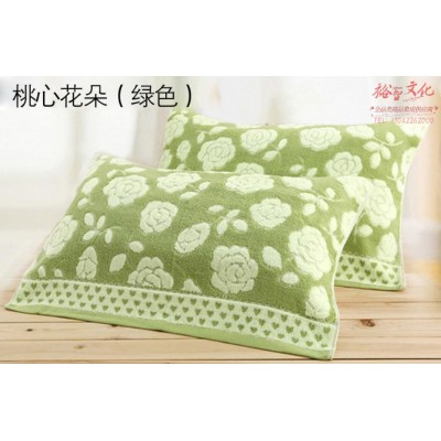 沐凡 纯棉枕巾一对装 加大加厚枕头巾 桃心花朵绿色50*75cm(对)SKU:yzwhyp971796