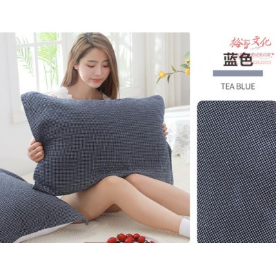 沐凡 纯棉枕巾一对装 全棉纱布加大加厚枕头巾 日式格蓝色(对)SKU:yzwhyp971846