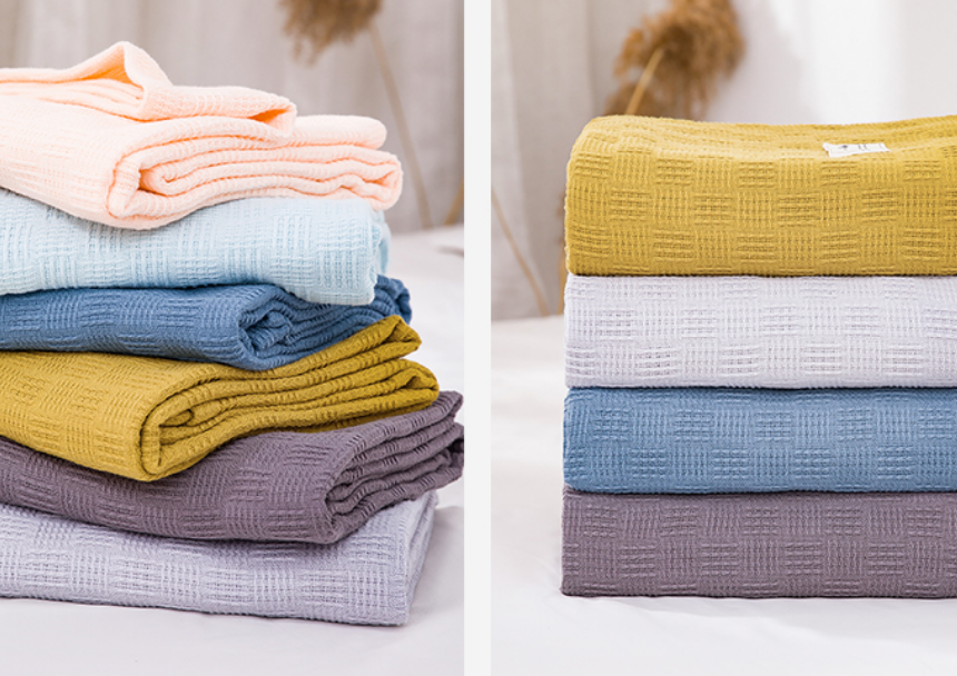 沐凡 毛巾被 纯棉盖毯 全棉纱布毛巾毯 双层镂空被-深咖100*150cm SKU:yzwhyp971950