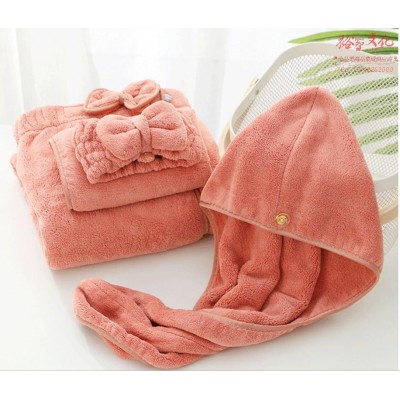 首页 > 装具 > 毛巾 > 沐凡 洗浴四件套 浴群 毛巾 干发帽 束发带套装 橘粉145*80cm SKU:yzwhyp971962