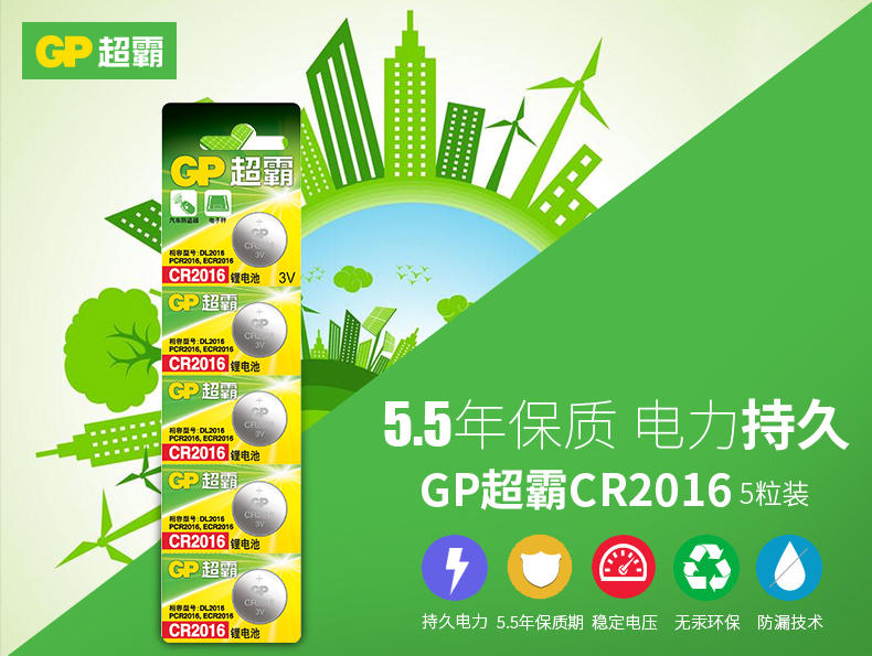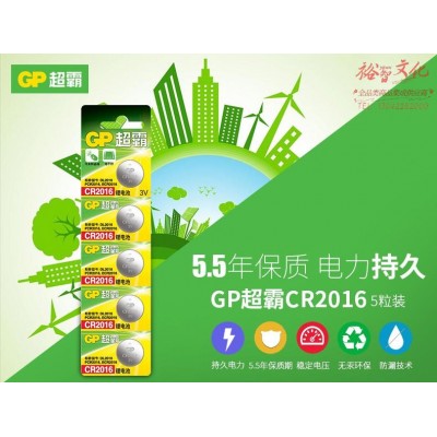 超霸(GP)CR2016进口纽扣电池电子3V适用手表摩托汽车钥匙遥控器CR2016 五粒装 SKU:yzwhyp972054